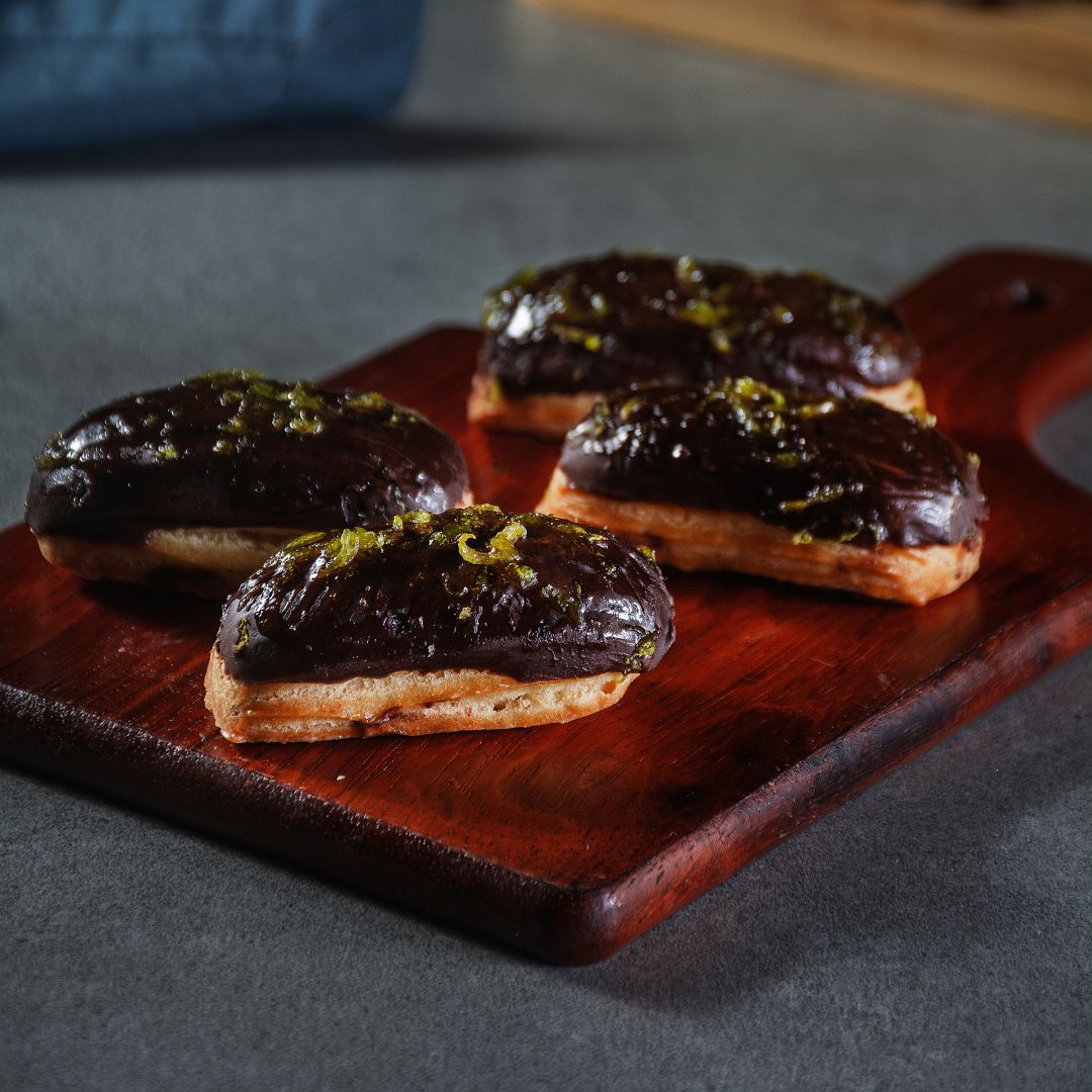 Éclair mini de chocolate de laranja com chocolate meio amargo - 4 unidades